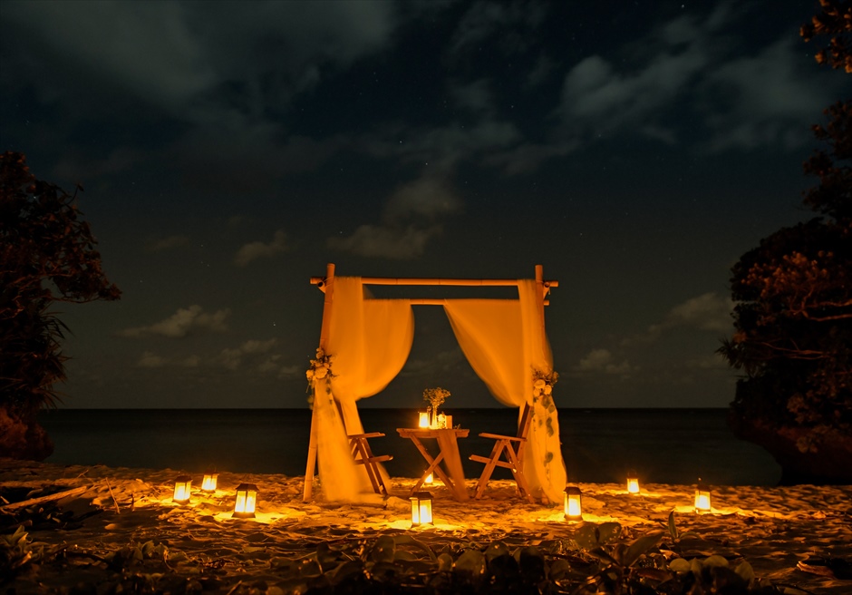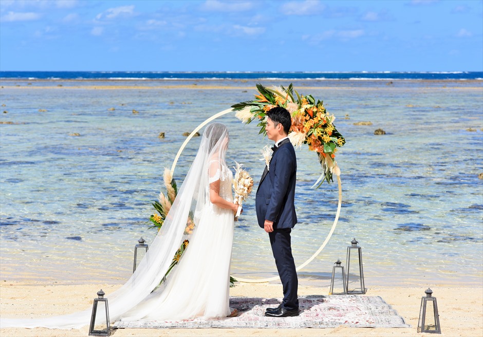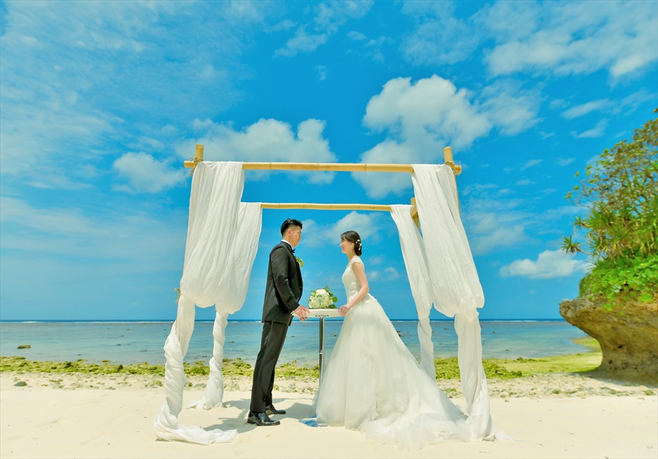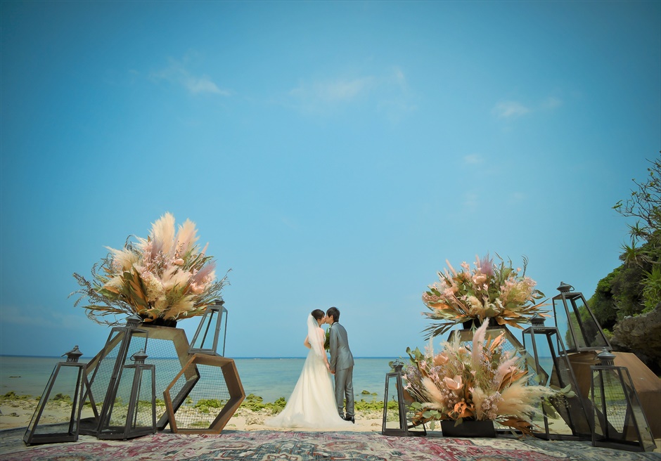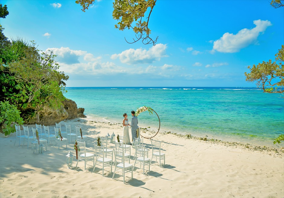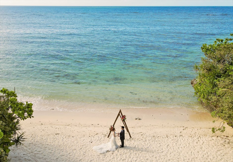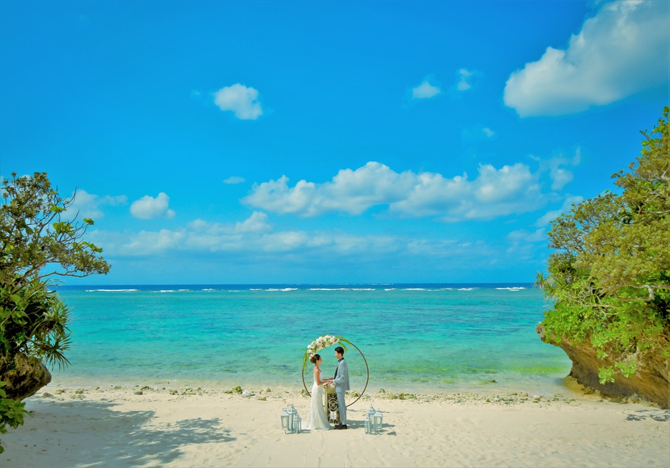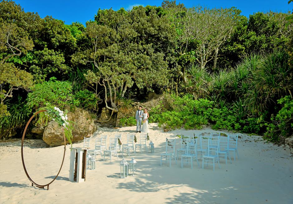 挙式代金 398,000円 プラン概要 石垣島随一に美しいコーラル・テラス石垣島のシークレットビーチでの一日1組限定のお二人だけのプライベートで贅沢なウェディング。コーラル・チャペルより5段あるデッキとジャングルを抜けてビーチへ入場する壮大なビーチ・ウェディング。挙式会場装飾は、アーチの形状をサークル・トライアングル・スクエアからお選びいただけます。挙式後はコーラルチャペル、オーシャンフロントデッキ、シークレットビーチにてお二人だけのロマンティックディナーも手配が可能です。 挙式開始時間 8時から18時挙式スタートまでの間でご希望の時間(リクエストベース) | ||||||||||||||||||||||||||||
