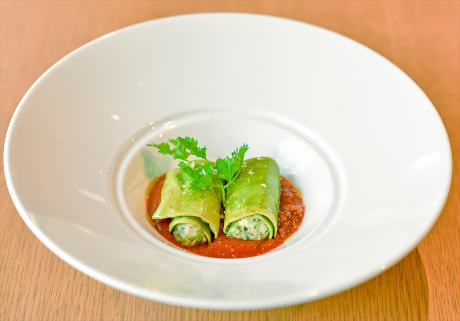 ジャージー牛のリコッタチーズと長命草のカネロニ