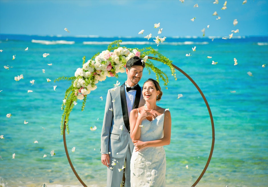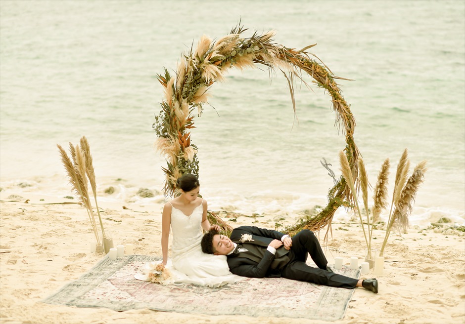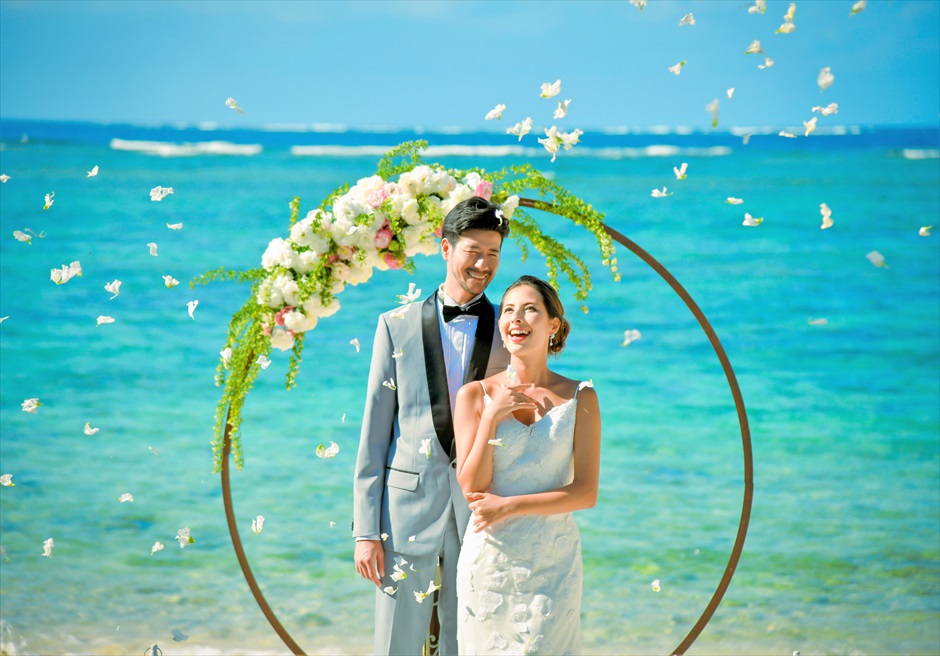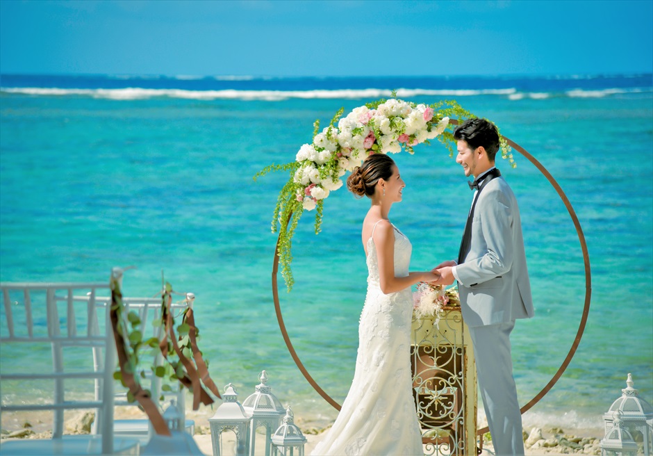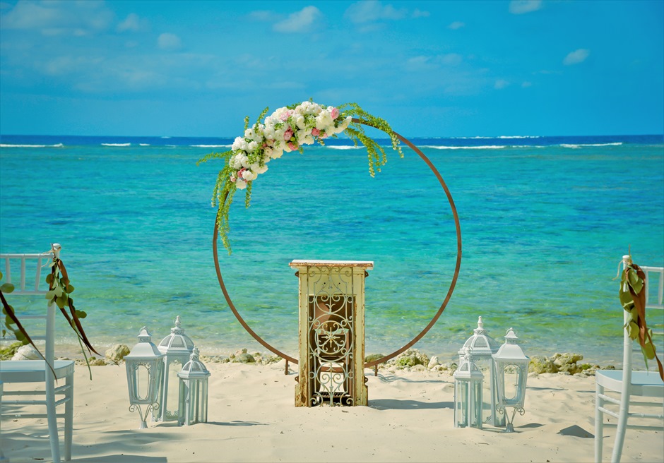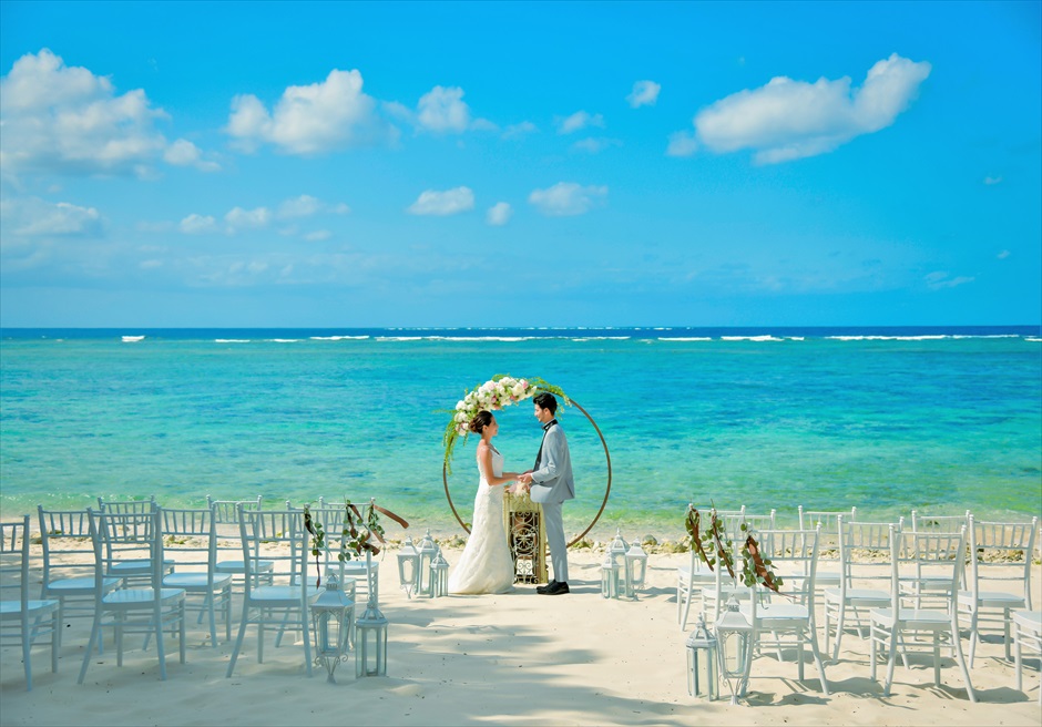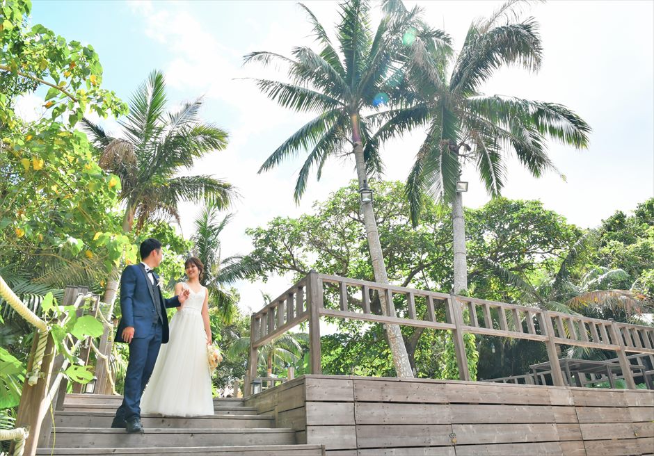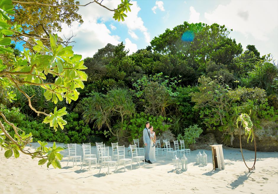 挙式代金 682,000円 プラン概要 石垣島随一に美しいコーラル・テラス石垣島のシークレットビーチ・ウェディング。5段あるデッキ上段から、ジャングルを抜ける長い挙式会場入場シーンはとても幻想的です。生花装飾を施したサークルアーチ、ラスティック祭壇、5色からお選びいただけるティファニーチェアをビーチに施したシンプルでフォトジェニックな挙式会場装飾です。別途代金で新郎新婦様のご希望通りの自由なビーチ・ウェディング装飾を実現できます。挙式後には追加代金でシーンを変更してオーシャンフロントデッキ、コーラルチャペルでの乾杯・ケーキカット・パーティー披露宴がお勧めです。 挙式開始時間 8時から18時挙式スタートまでの間でご希望の時間(リクエストベース) | ||||||||||||||||||||||||||||